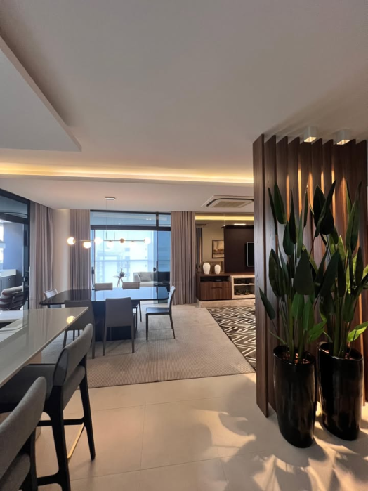 Este apartamento impressiona em cada detalhe: são 215 m² de área privativa, impecavelmente mobiliado e decorado, pronto para encantar.
