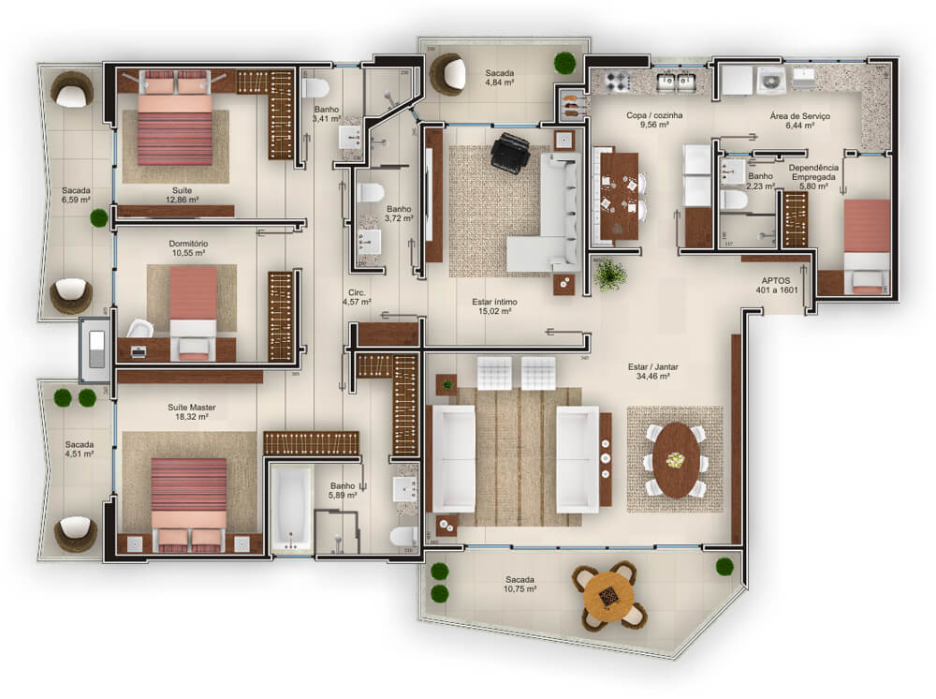 3 dormitórios com sacada – incluindo 1 suíte master + 1 suíte