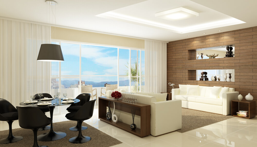 Sala de estar e jantar integradas, com sacada – amplitude e luminosidade em cada ambiente