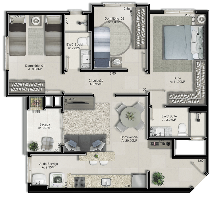Apartamentos com 2 ou 3 dormitórios (1 suíte)