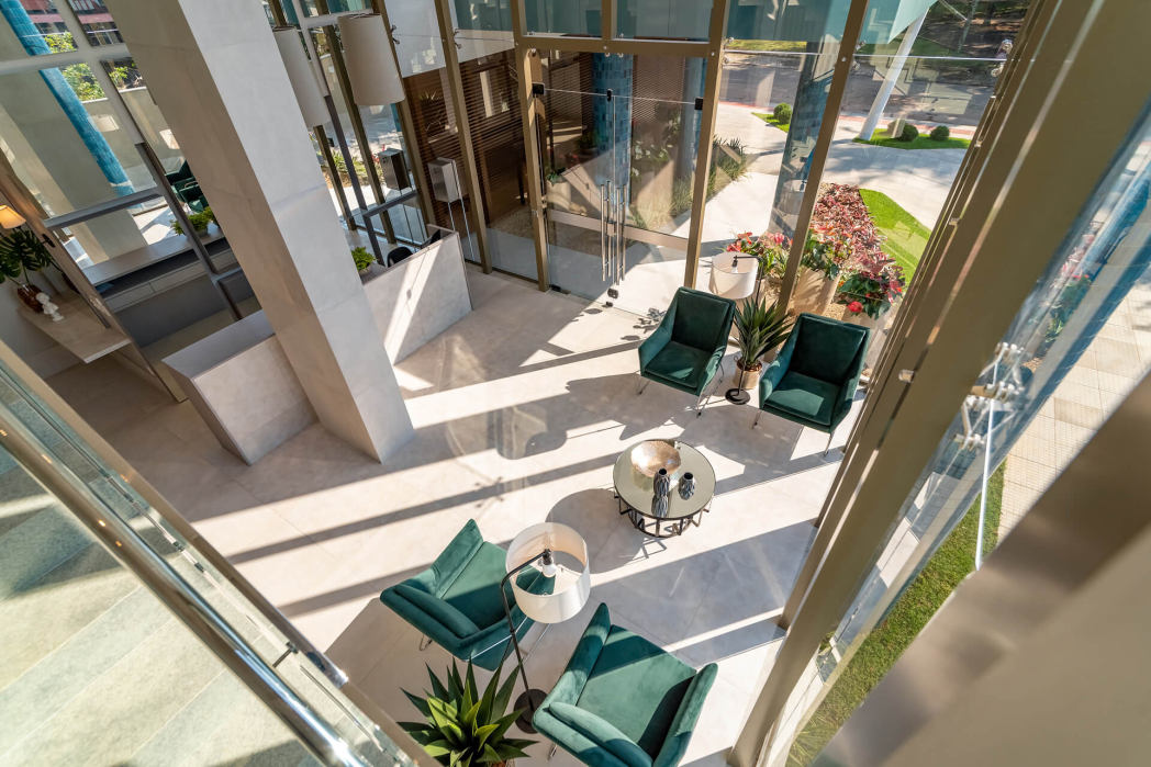 Hall de entrada mobiliado com pé-direito duplo – imponência desde a chegada