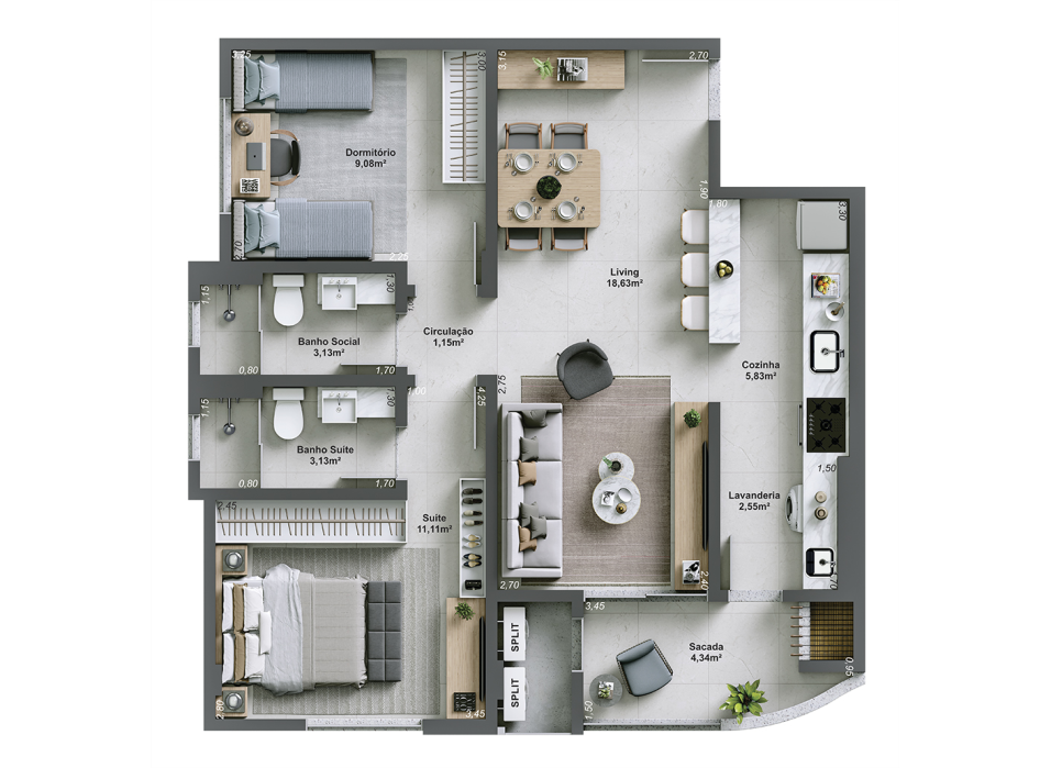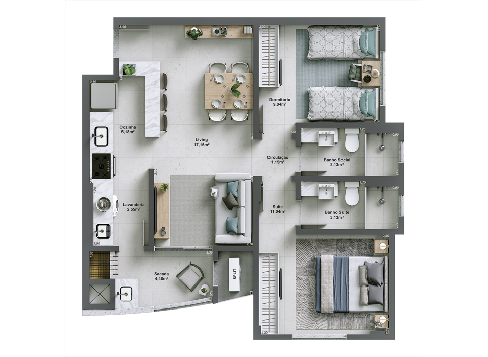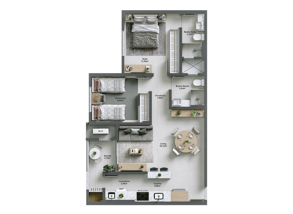 Apartamentos de 2 ou 3 dormitórios, em um projeto pensado para oferecer qualidade de vida e valorização constante.