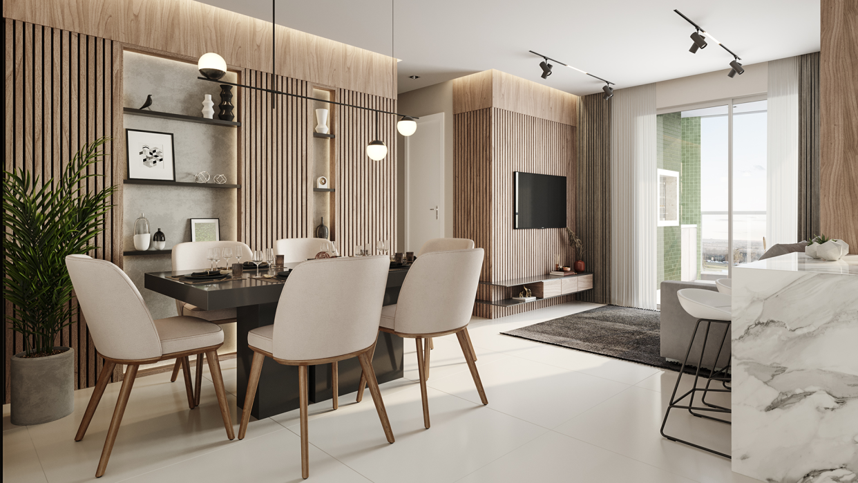 Sala de estar e jantar integradas