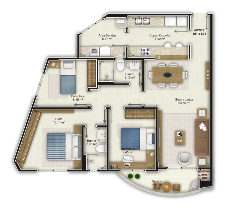 3 dormitórios, sendo 1 suíte – praticidade e privacidade