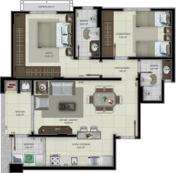 3 dormitórios, sendo 1 suíte – mais conforto para a rotina da sua família