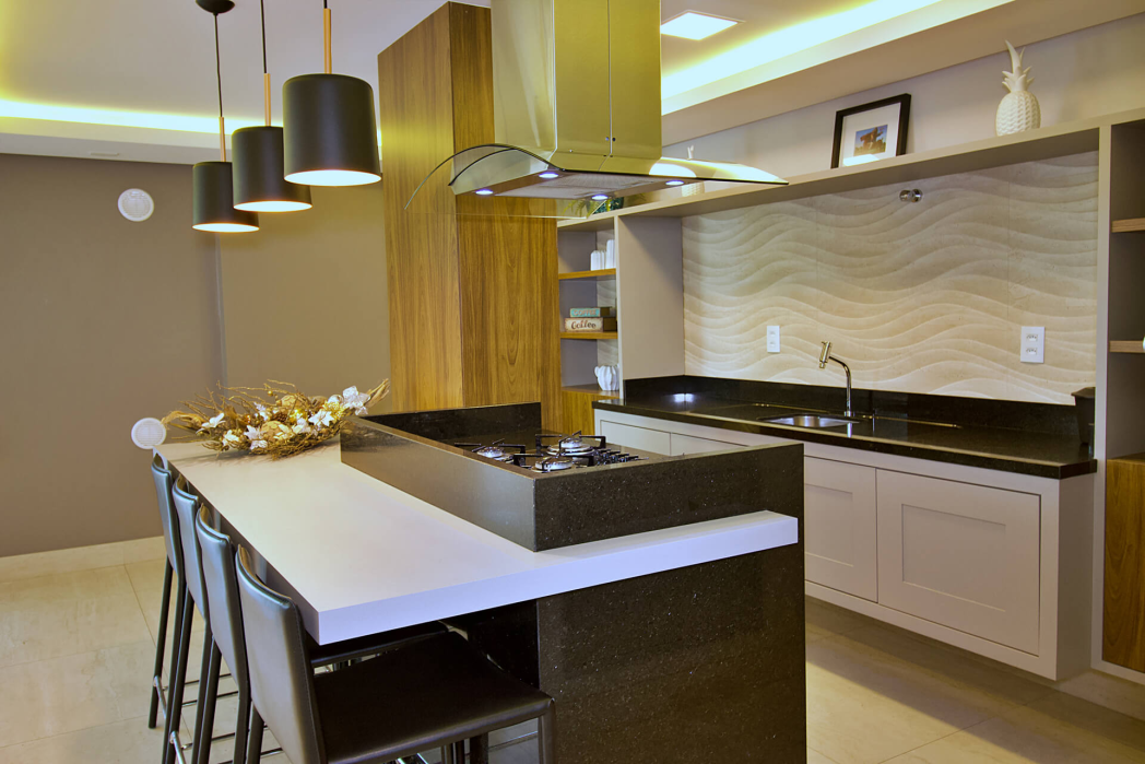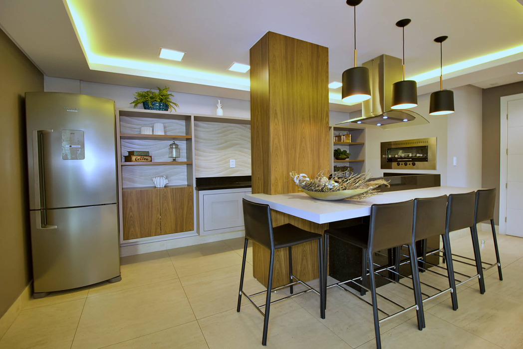 Cozinha integrada com sala de estar e jantar – amplitude e elegância no seu dia a dia
